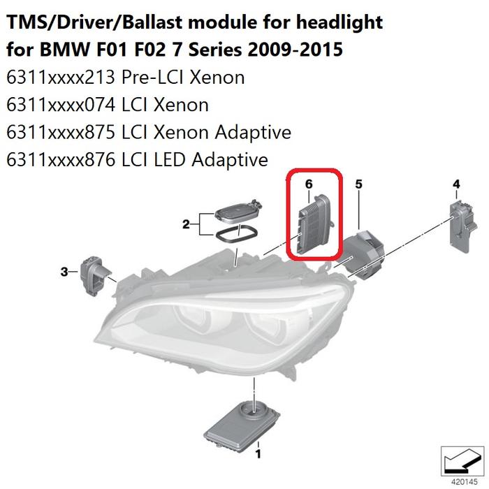 TMS DRL For BMW F01 F02 Headlight Module Ballast Lampu 63117316213 735